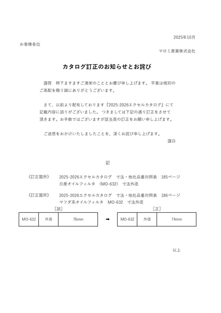 『2025-2026エクセルカタログ』カタログ訂正のお知らせとお詫び